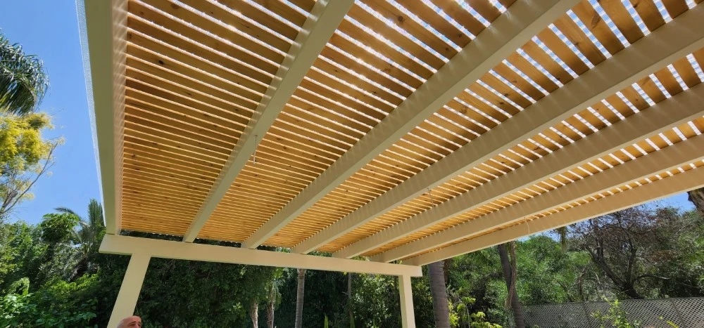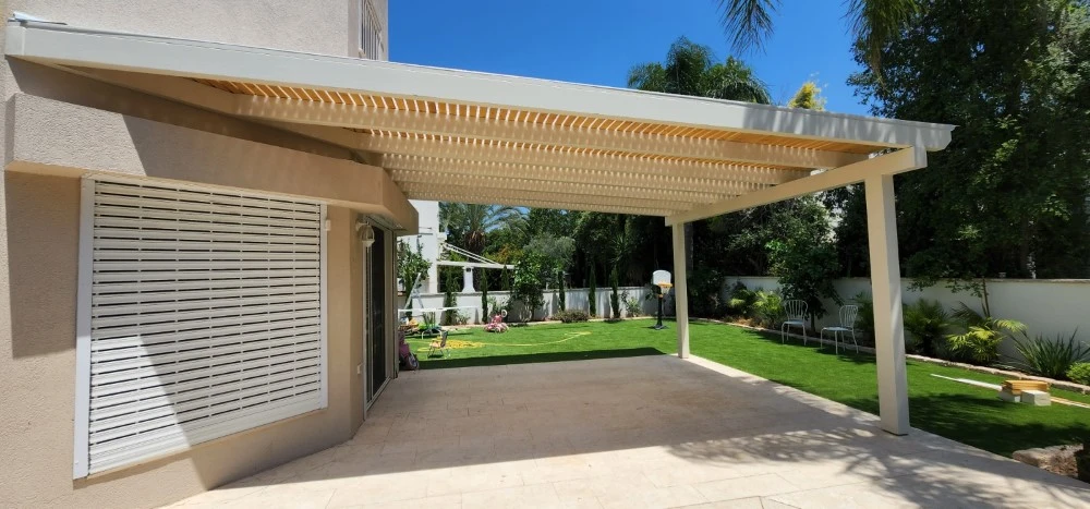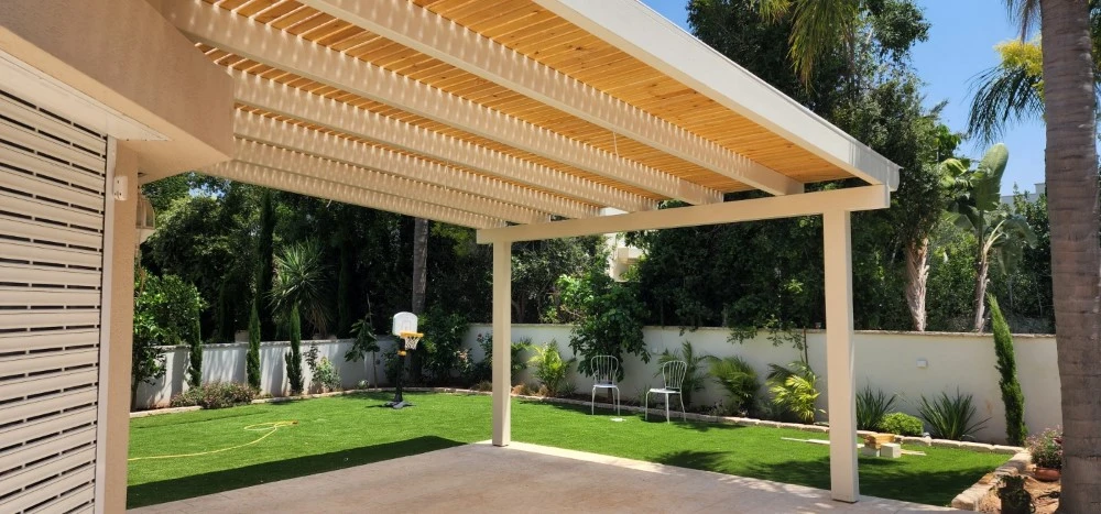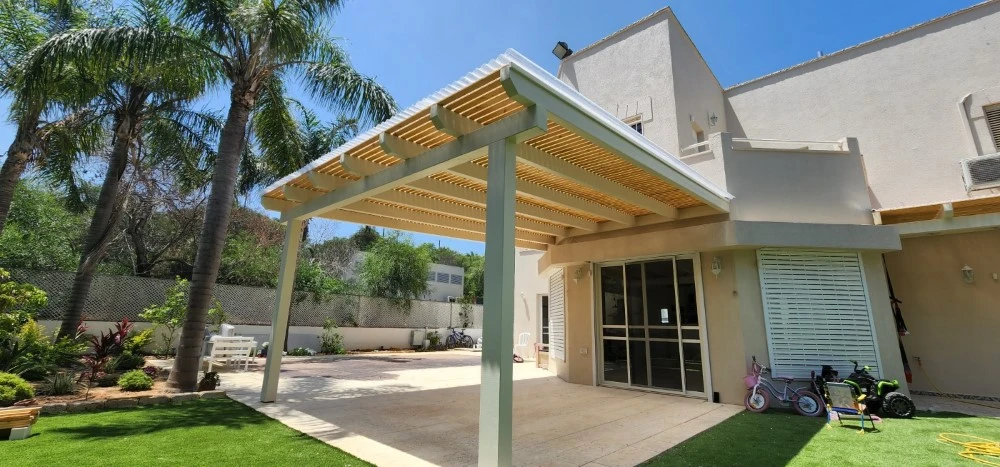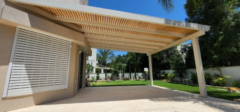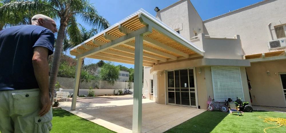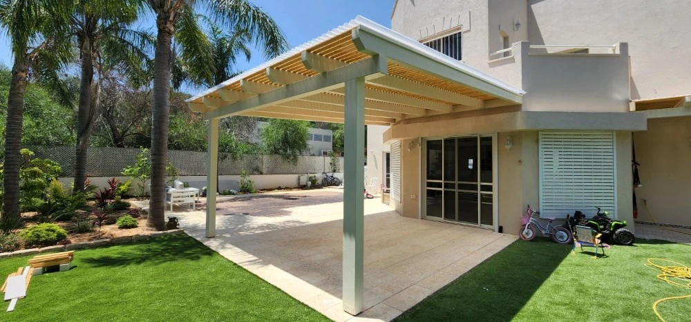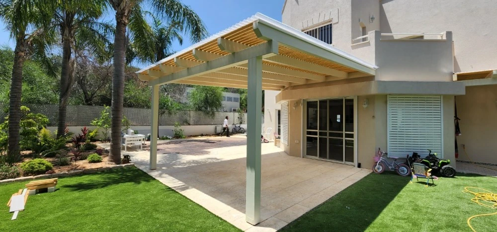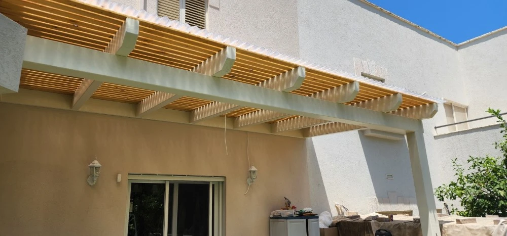 דף הבית » פרויקט פרגולת עץ גושנית בשילוב צבעים בקיסריה